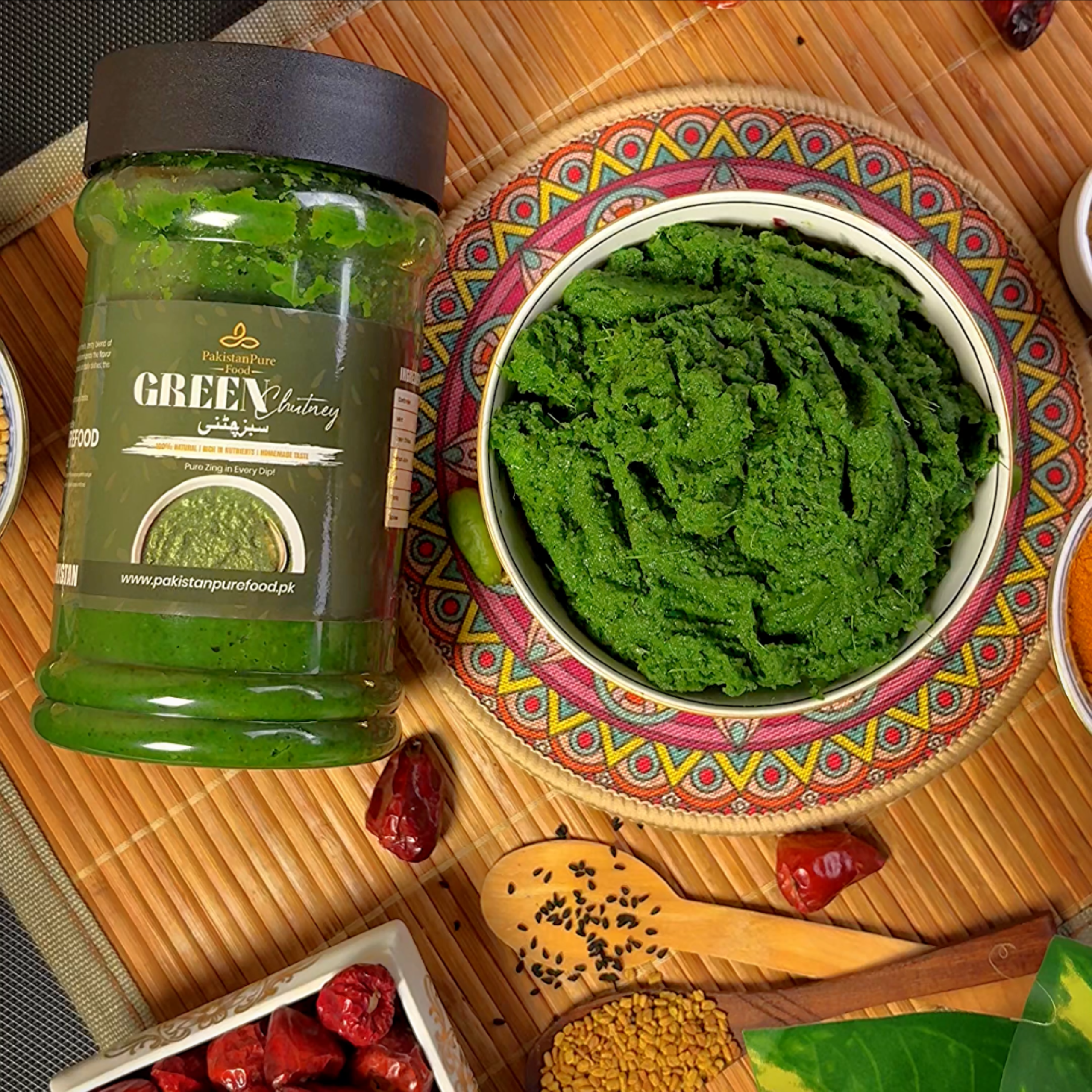 ہماری ہری چٹنی تازہ دھنیا، پودینہ، ہری مرچ، لیموں اور خوشبودار مصالحوں کے بہترین امتزاج سے تیار کی جاتی ہے، جو اسے تیز اور مزیدار ذائقہ بخشتی ہے۔ یہ روایتی چٹنی ہر پاکستانی کھانے کا لازمی حصہ ہے، جو ہر ڈش کے ذائقے کو نکھارتی ہے۔